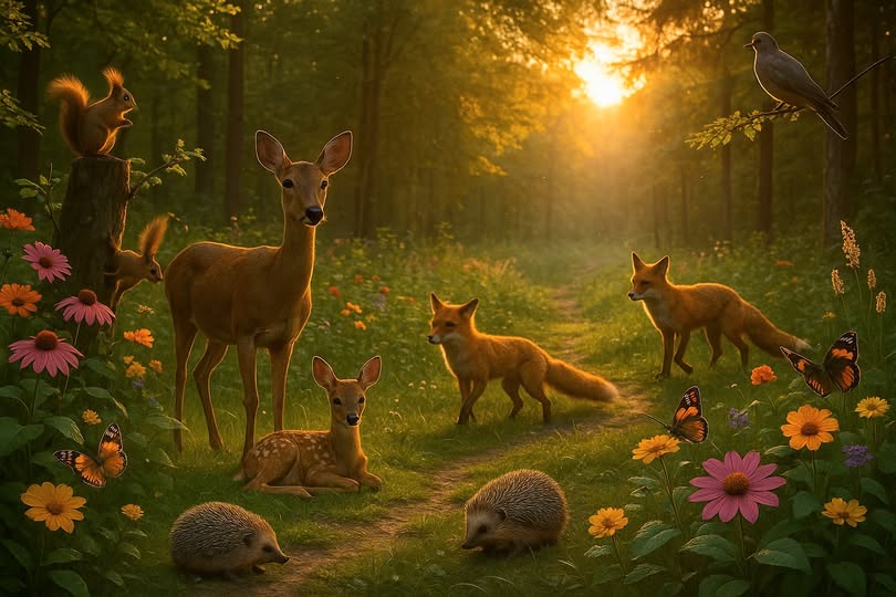 Und dort hinter dem Busch, wenn du genau hinschaust, kannst du sie sehen, zwei Igel, gemütlich auf Wanderschaft gehen. Hast du Glück an diesem Tag, da man ihn nur selten sehen kann, pirscht sich der Fuchs ganz nah an dich heran.