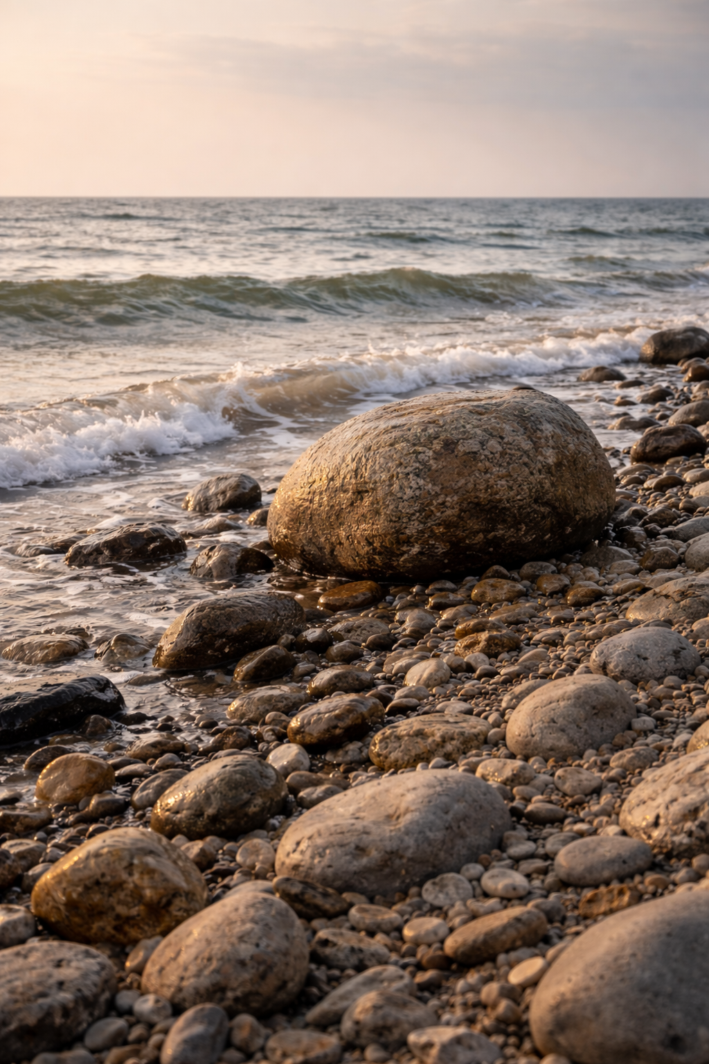 Drei Hände packten nach dem Stein. Zwei alte Große, eine junge Kleine. Er bewegte sich nicht. 'Ich schaffe es nicht, Junge,' sagte ich traurig. 'Einmal noch,' bat das Kind. Wir zogen mit aller Kraft. Und fielen hart auf den Boden. Da hörte ich ein Lachen. Ich schaute zu den Möwen. Sie waren es nicht. Es war mein Lachen! Mein Lachen, das in das des Jungen einstimmte. 'Warum lachst du, Junge?', fragte ich ihn. Er holte weit aus mit seinem Arm. 'Sieh dich doch mal um, Onkel. Wie viele Steine hier rumliegen. Einer schöner wie der andere. Wir haben sie gar nicht gesehen, weil wir immer nur diesen einen großen im Auge hatten. Lass uns einige dieser kleineren, doch genauso hübschen Steine auf das Wägelchen legen. Auch aus vielen kleinen Steinen lässt sich ein hübsches Mosaik legen.' Ich schaute mich um. Er hatte recht. Dieses Kind hatte recht. Warum sollten wir unsere Kraft für diesen einen Stein vergeuden, wo es so viele hübsche kleinere gab. Die sich zusammengesetzt zu einem schönen Bild legen ließen. Warum sollten wir unseren Mut von etwas zerstören lassen, was wir heute vielleicht nicht bewegen können? Können wir doch viele andere kleine Dinge zu einem Ganzen voller Harmonie setzen. Und uns daran erfreuen. Er half mir auf. 'Wir haben es versucht, Onkel.' Ich nahm sein Gesicht in meine Hände und schaute ihn dankbar an. 'Ja, wir haben es versucht. Und ich habe mich wieder gefunden. Du hast mich geführt, mein Junge. Hast mich gestützt, obwohl ich dir zürnte. Du hast mit deinen Augen erkannt, was ich nicht sehen wollte. Die kleinen Dinge, die wir bewegen können. Die uns neue Kraft geben können.' 'Morgen ist ein neuer Tag,' sagte er. 'Der große Stein wird noch da sein. Und solange können wir uns an den kleinen erfreuen, Onkel.'