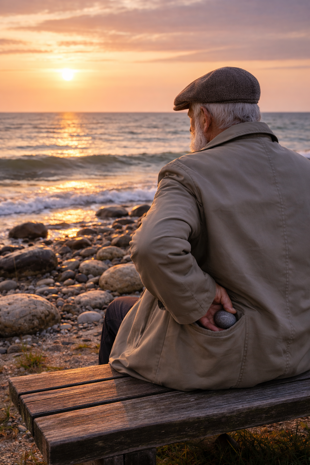Wir packten sein Wägelchen voll.Ich schaute zu den Möwen.Wie konnte ich nur denkendas sie mich auslachten.Voller Harmonie empfand ichplötzlich ihr Gezwitscher imAbendrot. Ich bückte mich, nahm einenStein und steckte ihn mirin die Manteltasche. Er sollte mich erinnern wennich die Möwen mal wieder lachenhörte. Später setzte ich mich noch eine Weile alleine auf die Bank.Sah den Jungen im Abendrotverschwinden. Höre das Geklapperder Holzräder auf dem unebenen Weg. Morgen würde er wiederkommen.Und mir glücklich von dem Mosaik erzählen,das er seiner Großmutter auf ihr Grab gelegt hatte.Von den Steinen die ich mit ihm sammelte.Die er mir zeigte. Zu denen er mich führte.Vielleicht werde ich morgen mit ihm auf denFußballplatz gehen.Den anderen zeigen das er nicht alleine ist.Ich könnte ihm eine Prothese bauen.Blühten eigentlich schon meine Apfelbäume im Garten? Er mag Äpfel.Ich mache mich langsam auf den Weg nach Hause. Sehe das die Krokusse sprießen.Wo hatte ich vorher nur meine Augen gehabt.Ich denke sie könnten Freunde werden.Der alte Mann und das Kind. Ich spürte den kleinen Stein in meiner Manteltasche.Ja, morgen ist ein neuer Tag.Und ich freute mich auf ihn. ... ...